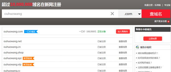 跨境電商市場的增長潛力巨大,這也掀起了一場域名投機搶注小熱潮,很多與外貿行業相關字眼貼近的全拼域名都被搶注一空,并且價值也一再被炒,升值巨大;比如我們在新網上查找有關“歐貨網”這個詞的全拼“ouhuowang”的.com域名,就被炒到了近20萬元,價值驚人,如果是簡易雙拼估計價值在數百萬以上。