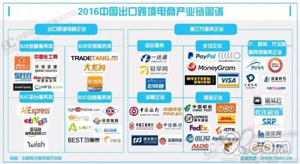 目前出口跨境電商主要包括B2B信息服務類的阿里巴巴國際站、環球資源、中國制造網、聚貿等;B2B交易服務類的大龍網、敦煌網、易唐網等;B2C平臺服務類包括:全球速賣通、亞馬遜、eBay、Wish等;B2C自營服務類包括:蘭亭集勢、環球易購、米蘭網、DX、浙江執御、百事泰等。