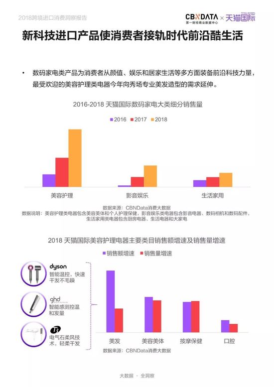 除了“潮”生活,從顏值、娛樂到居家生活等多方面的數碼家電類新科技產品,使未來感享受提前觸達消費者的生活。其中,美容護理類電器在2018年最受歡迎,需求上呈現了向“專業美發造型秀場”延伸的趨勢。