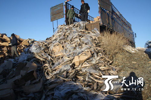 新疆吉木乃口岸檢驗檢疫局銷毀不合格水產品
