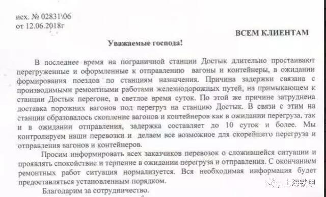 根據一份來自哈薩克斯坦的通知具體介紹了哈方多斯托克站目前出現的情況,具體如下: