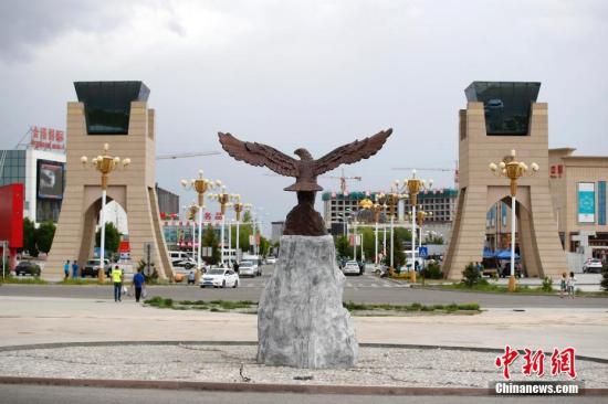 資料圖:霍爾果斯金雕廣場。中新社記者 富田 攝