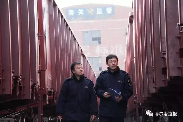 △ 阿拉山口海關關員現場監管“鄭歐”專列出境