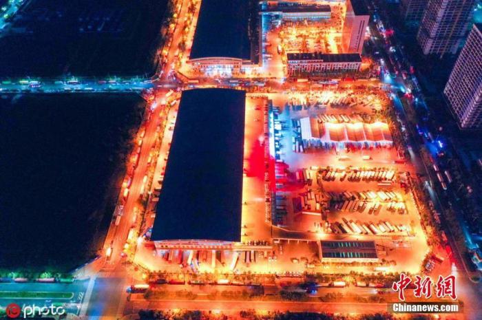 資料圖:中國(guó)郵政鄭州口岸(鄭州郵件處理中心)燈火通明。圖片來(lái)源:IC photo