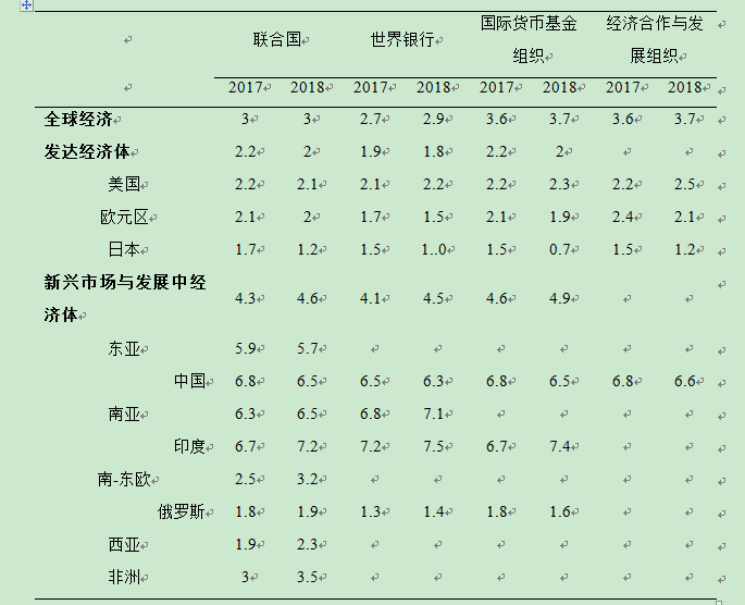 表1 國際機構對世界各主要經濟體的經濟增長速度預期(%)