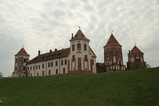 “米爾”城堡,是一座白俄羅斯建筑的獨特的紀念碑,2000年被列入世界文化和自然遺產名錄。米爾城堡四周為四方形,在每一個拐角都建有塔樓。第5座塔樓上有吊橋和鐵柵欄,可以抵御襲擊。城堡每一面墻上都有兩排圓孔,能夠很好地進行槍彈射擊防御,每一塔樓都能發射炮彈。米爾城堡所在的區域曾有一段政治與文化分分合合的歷史,動蕩局勢清楚地表露于城堡的建筑外貌上。米爾城堡十五世紀末以高聳的哥德式面貌展現于世,而后經不斷地增建及修整,先是工整的文藝復興時期的風格,再來是華麗的巴洛克風格。在長達將近一世紀的荒廢及拿破侖時期戰火的嚴重破壞下,于19世紀末葉時又再度修建,除了在原有的樣式上增添了其他風格之外,更將城堡周圍興建了一些新的建筑,變成了一個公園。而從米爾城堡的建筑發展歷程中亦可得知一段動蕩不安的歐洲歷史。