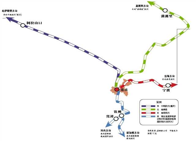 自2011年渝新歐國際物流大通道打通以來,重慶以鐵路為載體,陸續打造了西、南、北、東四條國際物流大通道。