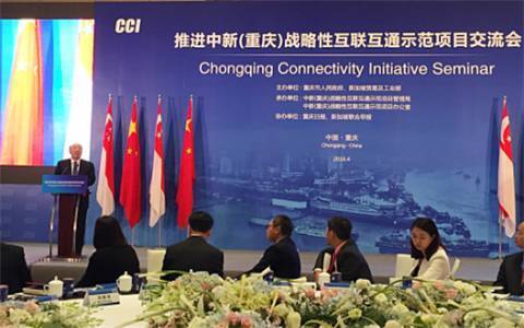 2016年4月16日,重慶市政府和新加坡貿工部共同在渝舉辦“推進中新(重慶)戰略性互聯互通示范項目交流會”,新加坡總理公署部長陳振聲率80余人的豪華政商團隊與會,攜手重慶政商兩界大佬圍繞運營中心與互聯互通經驗分享、多式聯運與交通物流、創新金融服務三個主題開展交流。