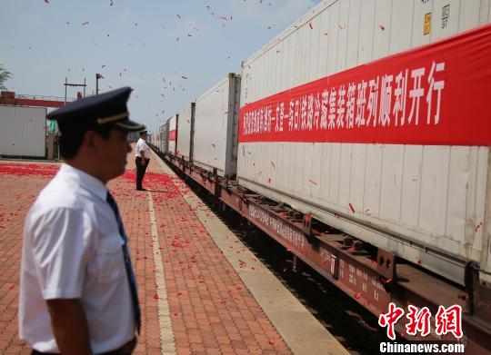 該班列西與昆明至濰坊鐵路冷鏈物流班列對接,東與威海至日韓海運航線對接,實現海鐵銜接。