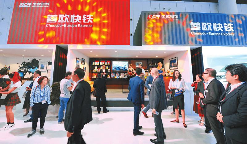 西博會進出口展暨國際投資大會的展場中,成都館的蓉歐快鐵展臺吸引了參會嘉賓的目光。