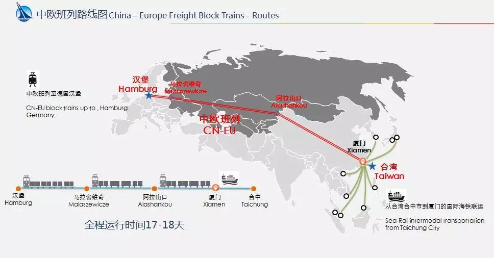 此次國際過境貨物成功運作,中歐(廈門)班列國際貨物過境業務運作水平再次提升。這三個集裝箱從臺灣臺中市上船,僅1天便可到達廈門,搭載由海投集團運營的中歐(廈門)班列駛向德國漢堡,全程運營時間只需17-18天。此次國際過境貨物是來自臺灣做工精致的窗簾,不僅是高貨值貨物,更是與 “21世紀海上絲綢之路”和“絲綢之路經濟帶”的主題交相輝映。