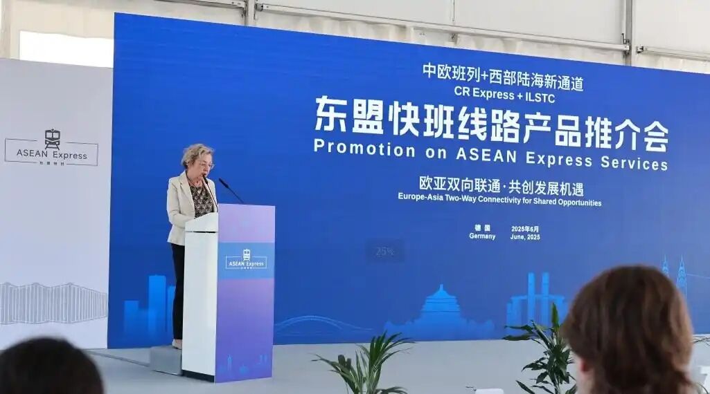 重慶市政府口岸物流辦副主任李顏表示,多年來,重慶始終以“先行先試”的魄力,為中歐班列高質量發展貢獻著“重慶實踐”。如今,東盟快班作為中歐班列的延伸,憑借高效快捷、綠色經濟、安全穩定三大特點,將搭建起一條貫通歐亞的綠色經貿新通道。0Sk大陸橋物流聯盟