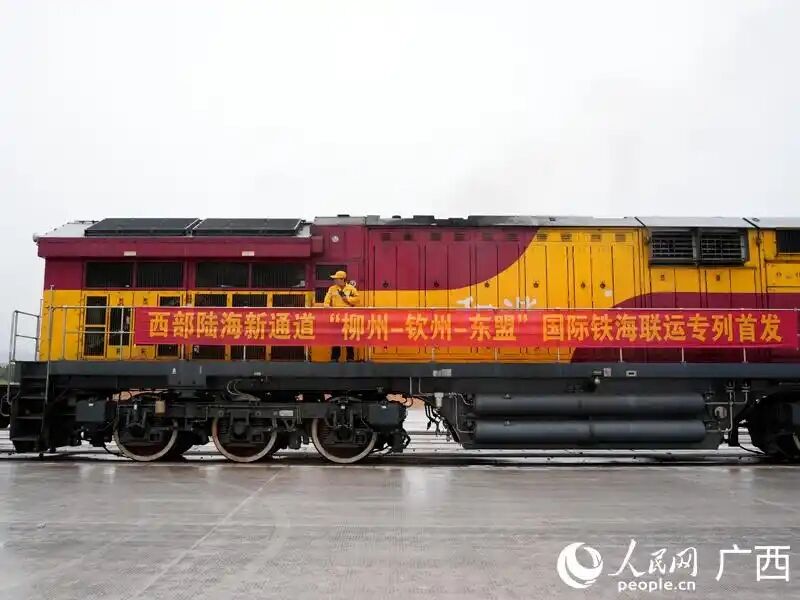 西部陸海新通道柳州—欽州—東盟鐵海聯運專列發車。